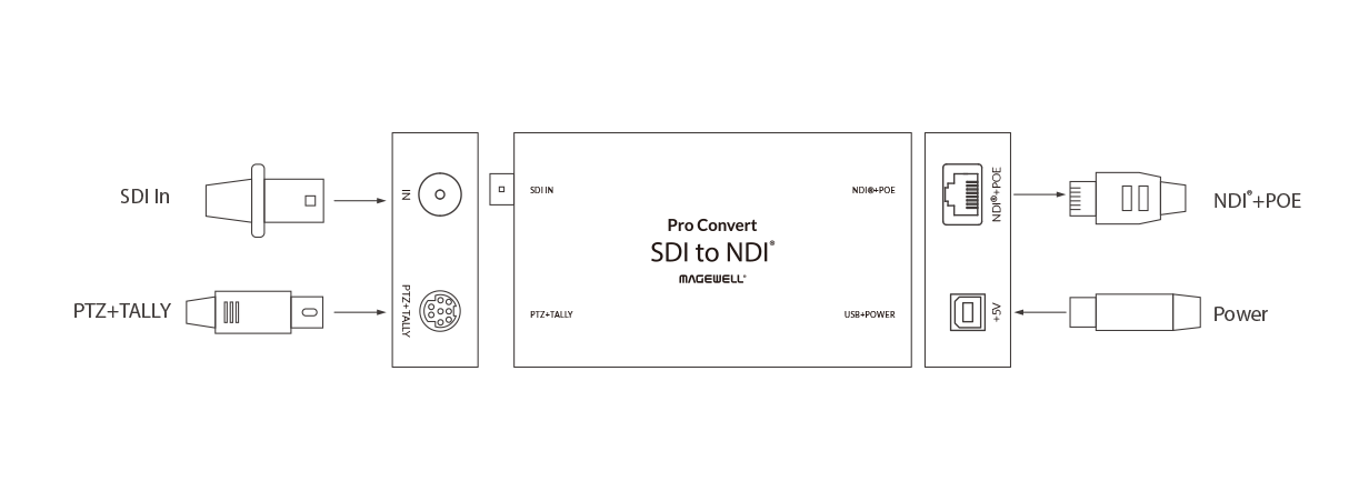 - Konverziu SDI signálu so vstavaným zvukom na NDI® stream