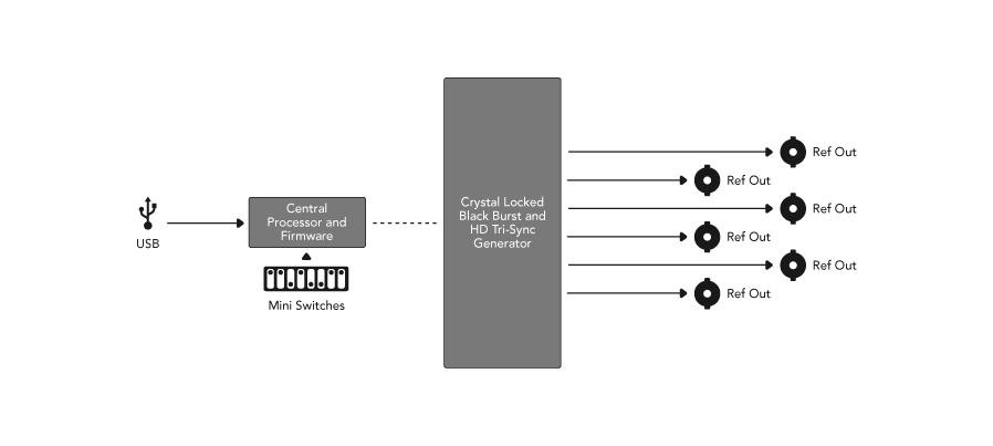 Obsahuje 6 stabilizovaných video referenčných výstupov pre synchronizovanie všetkých zaradení v štúdiu v HD štandarde Tri-Sync alebo SD štandarde Blackburst. Je vhodný pre malé štúdia alebo prácu v teréne či prenosových vozoch.